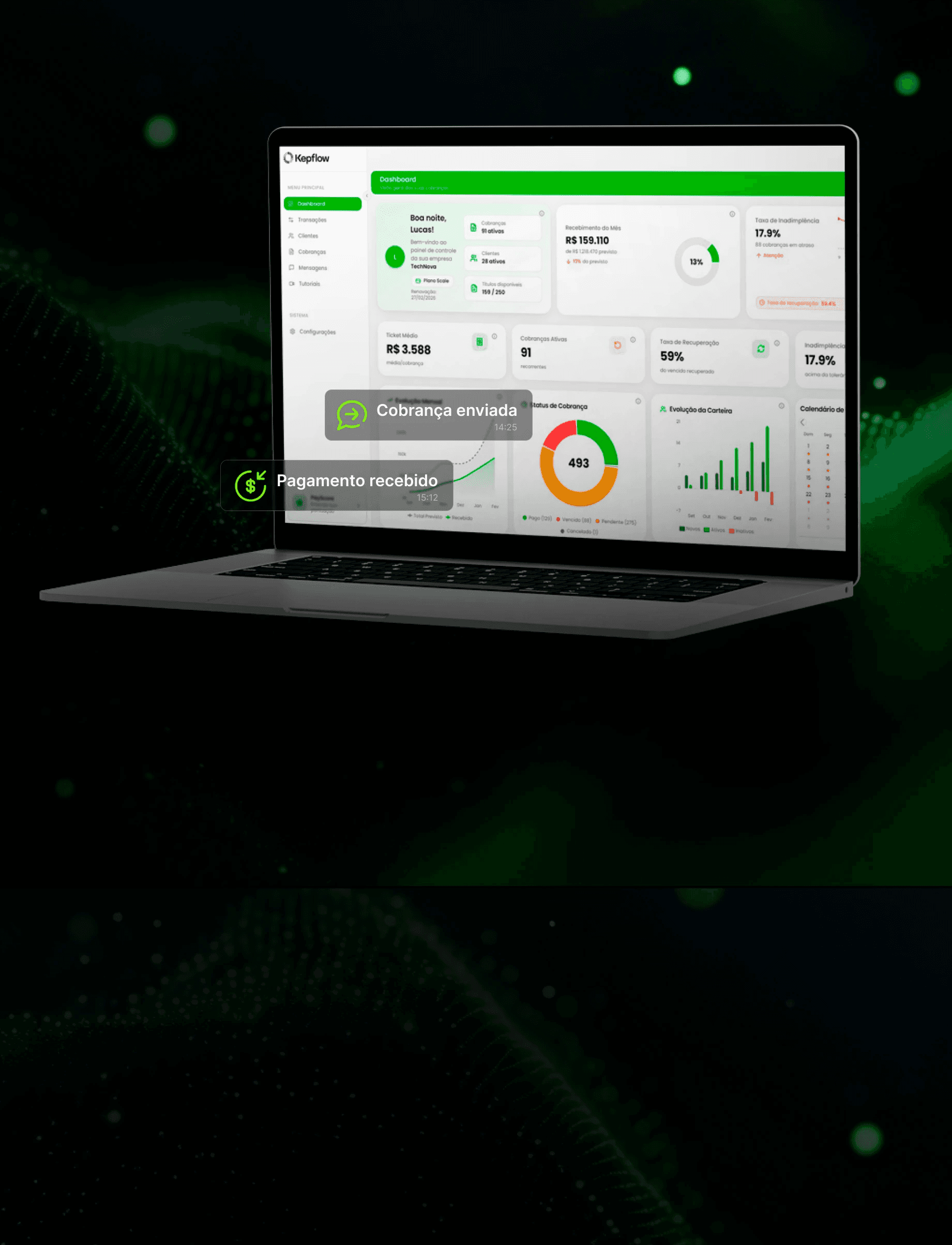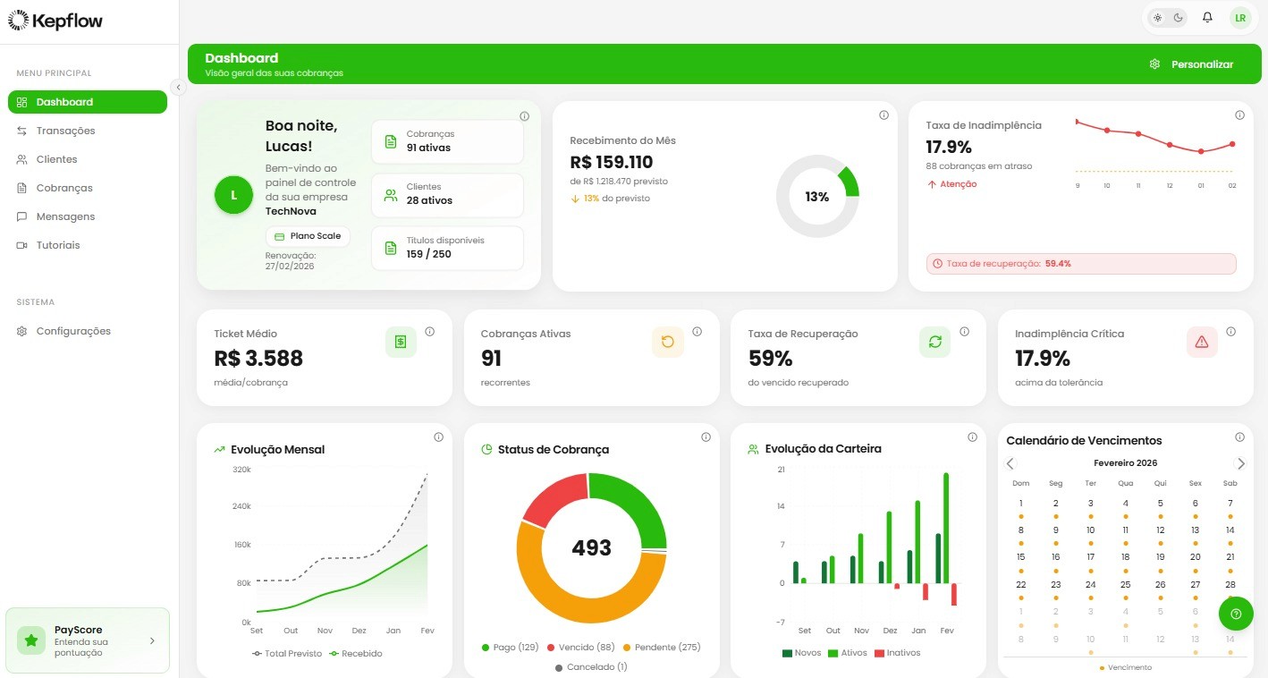 O Kepflow executa cobranças estratégicas automaticamente