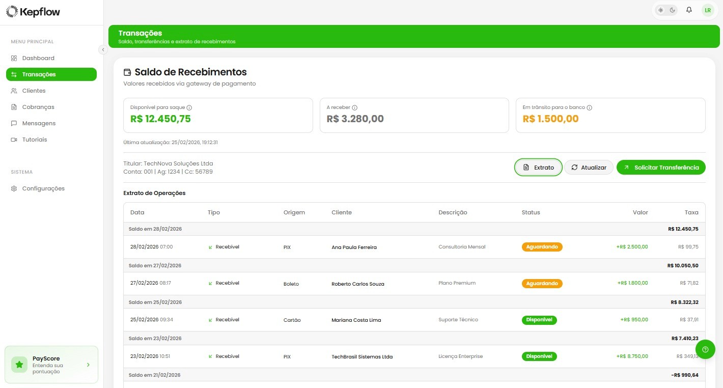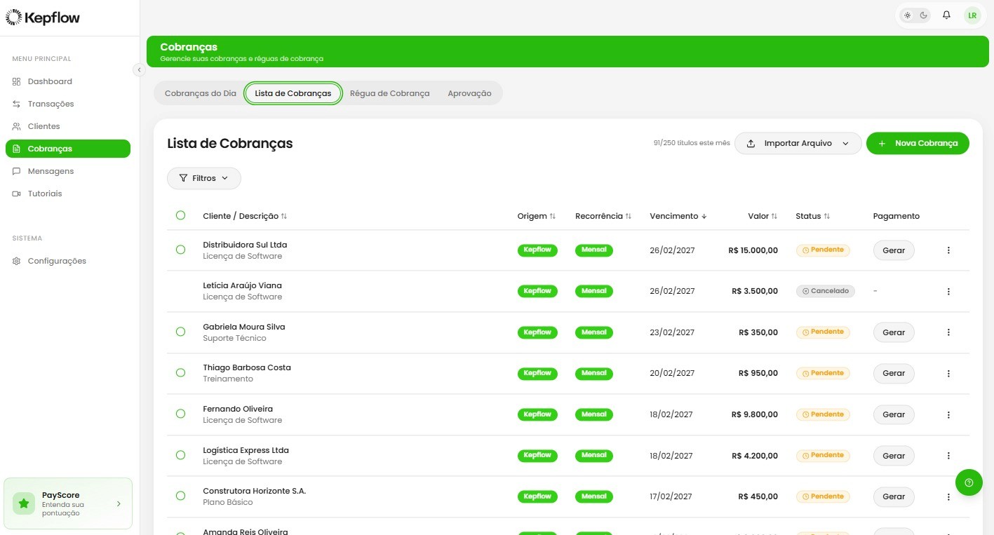 O Kepflow executa cobranças